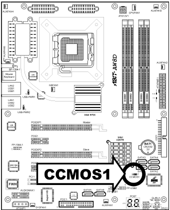 Turn off AC power, move CMOS jumper from 1-2 pin to 2-3 pin for 5 seconds.
