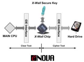 Secure IDE is a encryption card that uses the eNOVA X-Wall chipset that ensures confidentiality and privacy of your data through disk encryption. When booting up your system, go to DOS and implement the FDISK instruction. This instruction will make a partition to format the Hard Disk to accept the secure IDE key. After this procedure, there are no more extra steps to perform besides using the IEEE key to "open" the hard disk each time you boot up your system.