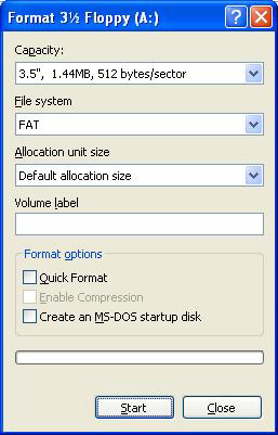 1. Right click on floppy disc icon in "My Computer" and select "Format".