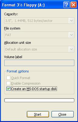 2. Check "Create an MS-DOS startup disk" and then just click "Start".